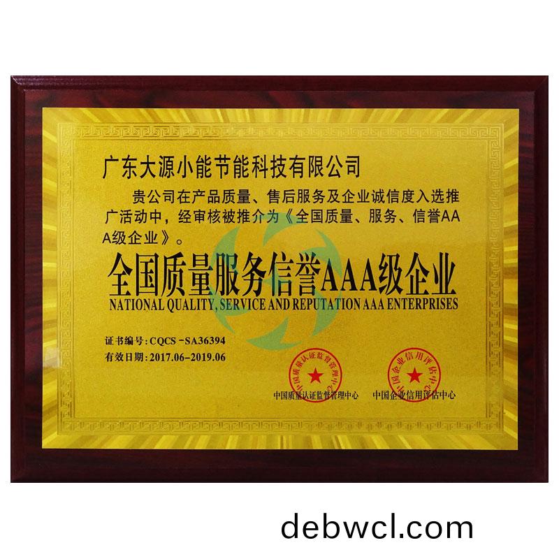 2017年(nian)6月(yue),榮(rong)獲“全(quan)國質(zhì)(zhi)量(liang)服(fu)務信譽AAA級企(qi)業(yè)”稱(cheng)號(hao);